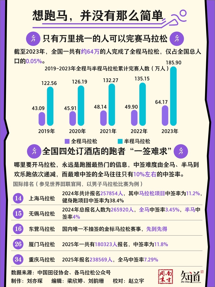 国际排名15的无锡马拉松2024年总报名人数多达26万,其中全马中签率仅有3.45%,半马中签率为4%,国际排名34的重庆马拉松全马中签率也仅有7.29%。